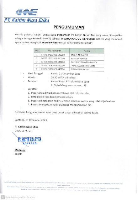 SELEKSI : PT. KALTIM NUSA ETIKA
